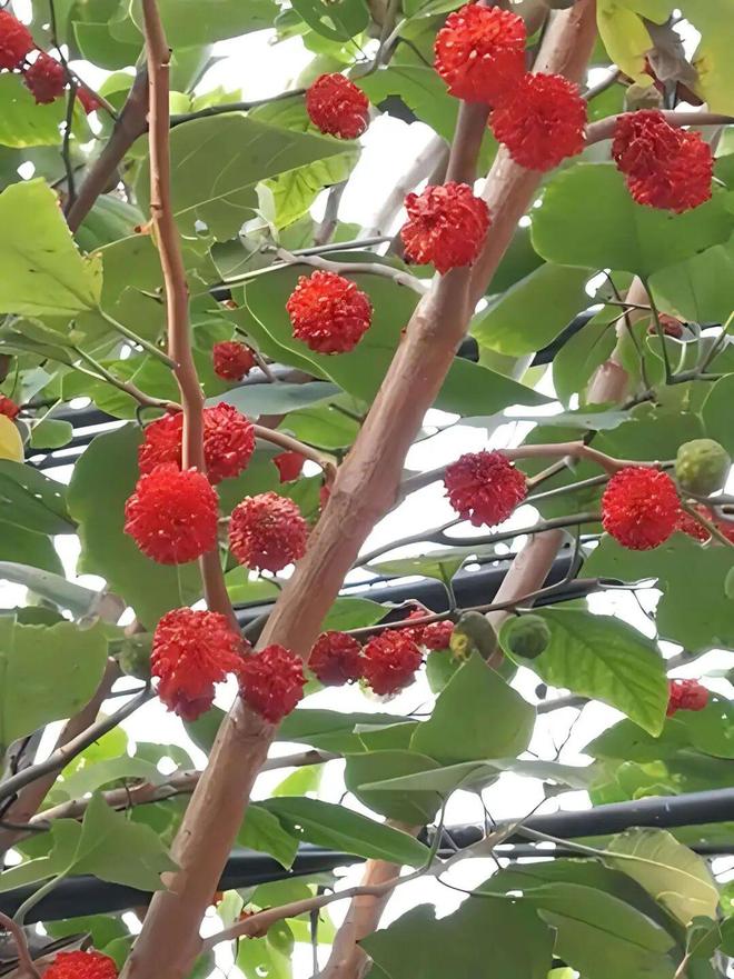 秋天的时候它大量成熟,挂在树上很像葡萄,但是成熟以后就变得红色了,非常诱人!