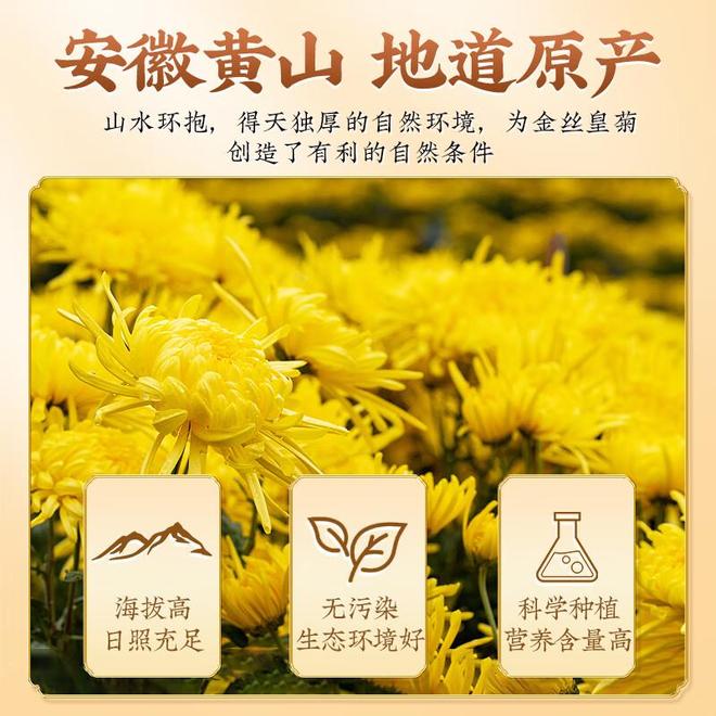 元族菊金丝皇菊堪称菊花茶中的爱马仕,每朵直径达5-7cm的完整菊朵,在80℃热水中会演绎令人屏息的复活秀。原本紧蹙的花瓣逐层舒展,金黄的花芯渐渐显露,整个过程宛如观看延时摄影中的花朵绽放。区别于普通杭白菊的草腥味,顶级金丝皇菊带有蜂蜜般的甜香,这是因其生长在江西修水的高山云雾带,花瓣积累了丰富的黄酮苷。专业茶师建议用三泡法:首泡30秒醒茶,二泡2分钟品香,三泡5分钟释出全部营养